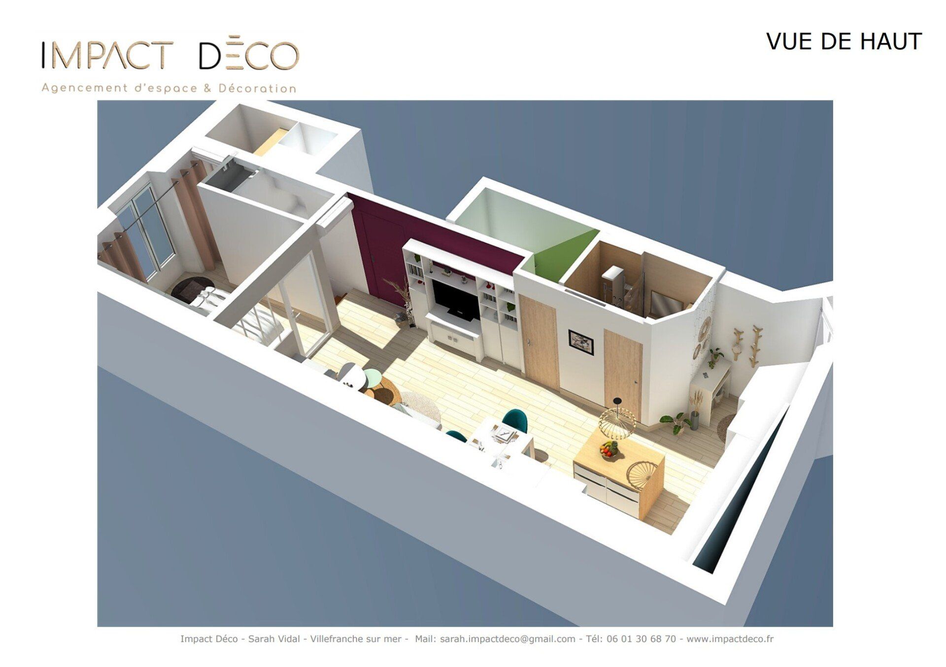 - Réaliser un aménagement du haut d'un duplex en créant une chambre parentale, avec cuisine ouverte sur le séjour, un îlot central, un grand canapé d'angle familial et beaucoup de rangements.